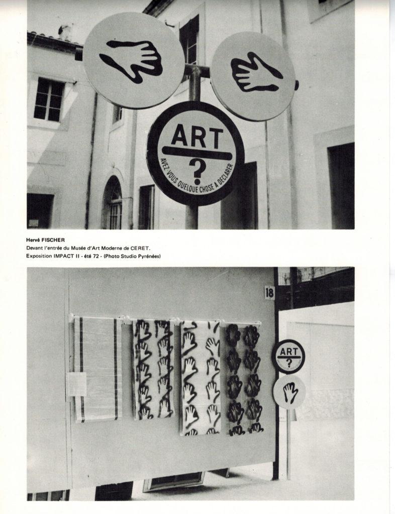 Georges Badin, directeur du Musée d’art moderne de Céret demande à Hervé Fischer, Jacques Lepage et Jean Clair de réunir ensemble des artistes contemporains pour l’exposition « Impact II ». Il en fait l’affiche et la couverture du catalogue. (voir ci-dessus)