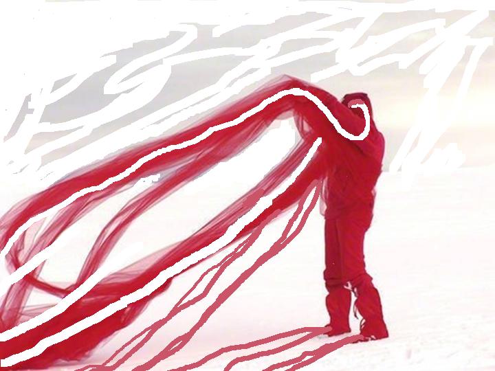 Photo de performance d’Andréa Juan dans l’Antarctique reprise digitalement (Conférence de Buenos Aires sur l’Antarctique, 2012, lors de ma conférence sur la mythoanalyse polaire).