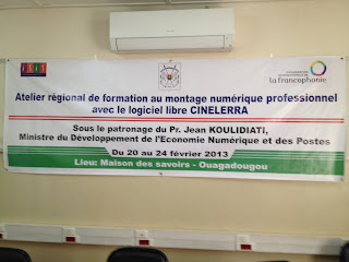 A Ouagadougou, cet atelier de formation au logiciel libre CINELERRA pour la postproduction en cinéma numérique, organisé conjointement par l’Organisation internationale de la Francophonie et le gouvernement du Burkina Faso en février 2013, donne l’espoir d’une dynamique africano-numérique en plein essor. J’y ai participé au nom de la FIAM, la Fédération internationale du multimédia.