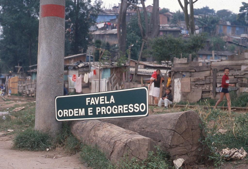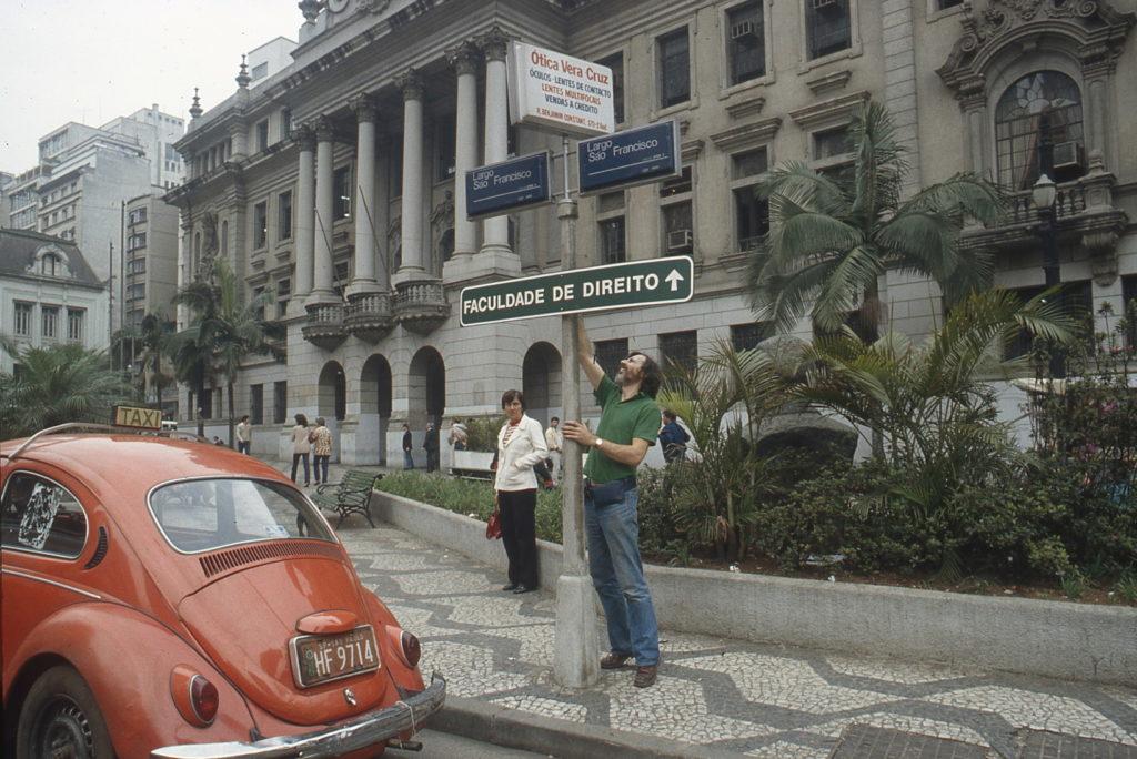 A Sao Paulo, Brésil, où je suis invité spécial de la Biennale de 1081 à la demande de Walter Zanini, son directeur. Le Brésil est alors soumis à la dictature militaire. Je choisis la litote comme mode d’expression, ce que beaucoup d’artistes pratiquaient alors dans les pays d’Amérique latine en cette période difficile. Avec l’aide d’une équipe d’étudiants de l’École des Beaux-arts, nous sérigraphions des lés de papier pour les affiches géantes qui sont en ville. Nous reprenons simplement, sans autre commentaire, des noms de quartiers bien connus à Sao Paulo en y ajoutant des flèches directionnelles et en respectant les codes de lettrage blanc sur fond vert en usage dans les signalisations routières. Une grande compagnie d’affichage se prête à l’intervention et colle les lés de papier. Une chaîne de télévision filme en temps réel la mise en place des affiches opposant Liberdade et Realidade ou Consolaçao, etc., et diffuse les séquences. Simultanément, malgré la présence des deux polices, militaire et municipale, je peux mettre en place au centre ville des panneaux routiers avec le même codage, qui reprennent des mots courants ayant des implications socio-politiques. Et nous n’oublions pas de placer une telle signalisation à l’entrée de la favella Ordem e Progresso qui porte donc ironiquement ce nom selon le slogan d’Auguste Comte qui sert de préambule à la constitution brésilienne. L’impact public de cette intervention, qui me permet d’agir sans compromission comme artiste n’a pas manqué. Mon statut d’artiste invité spécial m’a protégé de toute arrestation, de même que les étudiants en art qui m’ont aidé.