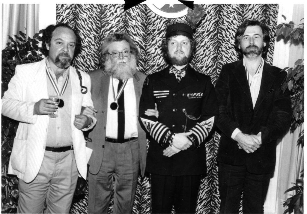 Hervé Fischer jouant le rôle « son Excellence Mythanalyste », 1983